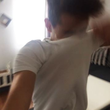 I recorded myself with my hand and not with an tripod because with my hands im always have some movements and as we learned movements are good to hide the cut. First i turned the camera to the selfie camera then i started to record myself until the moment i pulled up my Tshirt because thats the point where i wanted to disappear. And then i turned the camera again to my back camera and turned myself 180°.